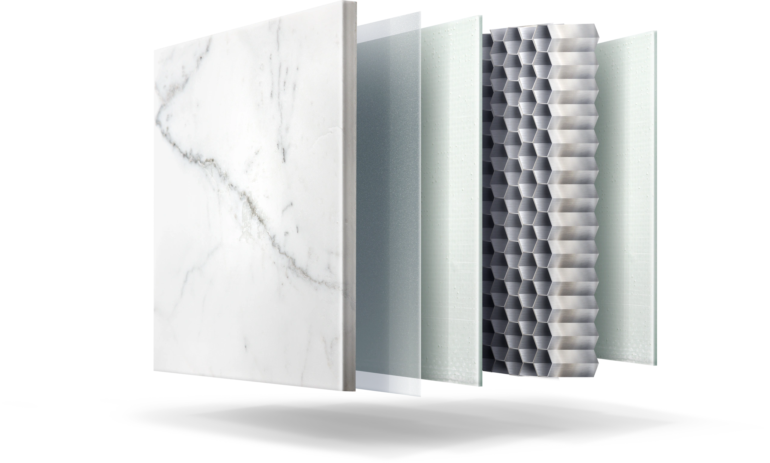 ULTRA-X is a vacuum infused carbon fiber backing under 1/8" to 3/16" stone creating an extremely lightweight yet strong composite panel.