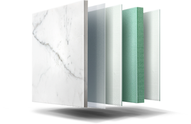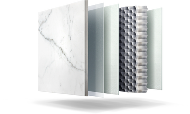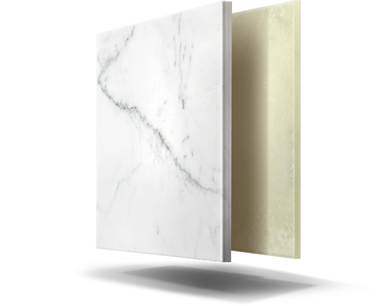 ULTRA-F is a vacuum infused fiberglass backing under 3/16" stone creating an ultra thin composite panel. These panels are intended for adhered applications where there is little room for buildup. Due to their thin construction, ULTRA-F panels are also ideal for backlighting.
