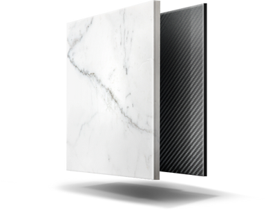 ULTRA-X is a vacuum infused carbon fiber backing under 1/8" to 3/16" stone creating an extremely lightweight yet strong composite panel.